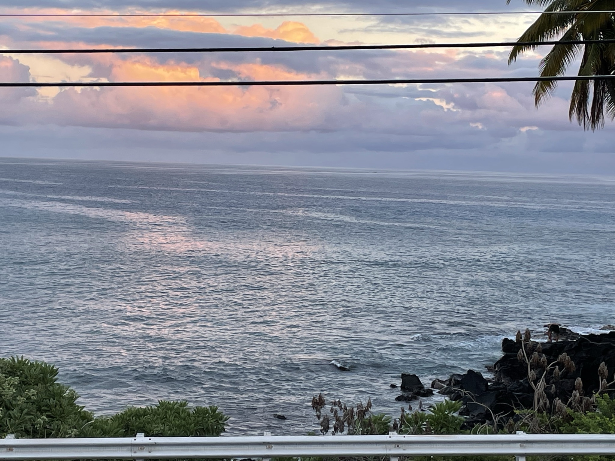 Today we visited a snorkel spot near Pu’uhonua o Honaunau (Place of refuge, Honaunau.) The snorkel spot is called Two Step because there are two lava steps into the water. Once in the water, you find coral formation after coral formation, each teeming with tangs, parrot fish, trigger fish, and a whole bunch I can’t name. A pod of dolphins makes the cove home. My son, who chanced upon them while swimming above, said there were ten, including two babies. I saw at least four surface several times.