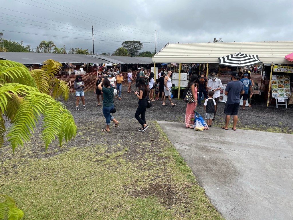 One of the reasons we are taking an extended vacation is so that we can enjoy and savor the local culture. When the kids were with us, I regretted that we didn’t have more time to do just that. We were always going here and there to some new sight or beach, which of course was fun, but we didn’t really connect with the locals. Yesterday, Sunday, we spent some time wandering around a huge farmer’s market between Kea’au and Pahoa, the Maku’u market. The market itself covered several acres. It was row upon row of fruit and vegetable sellers, craft sellers, plant sellers, and food vendors. There were Hawaiian, Thai, and Mexican offerings. There were coffee vendors and a guy selling vintage aloha shirts. I had to force myself to stay away from his tent.