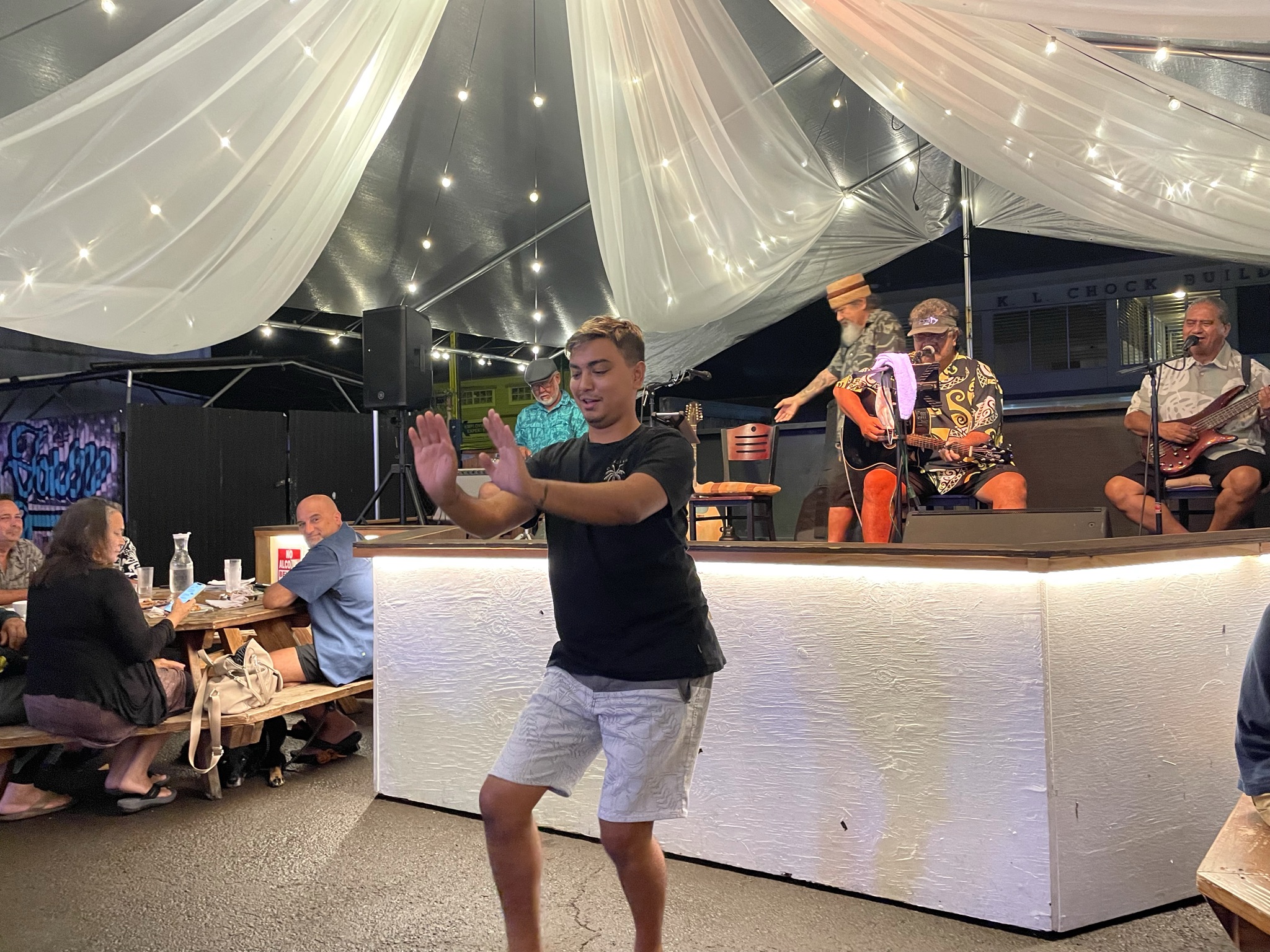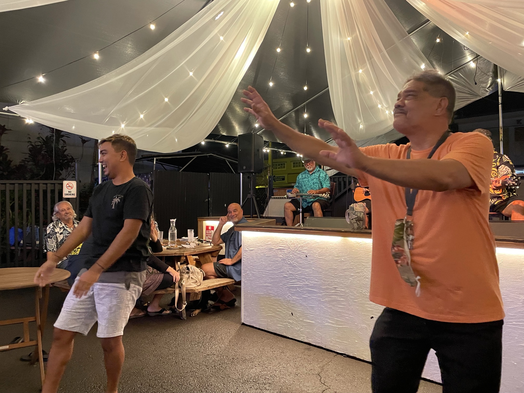 When he finished, he invited his kumu hula, his dance teacher, to perform. Finally, three aunties in the audience stepped up to perform. It was exactly the kind of spontaneous fun we had been looking for.