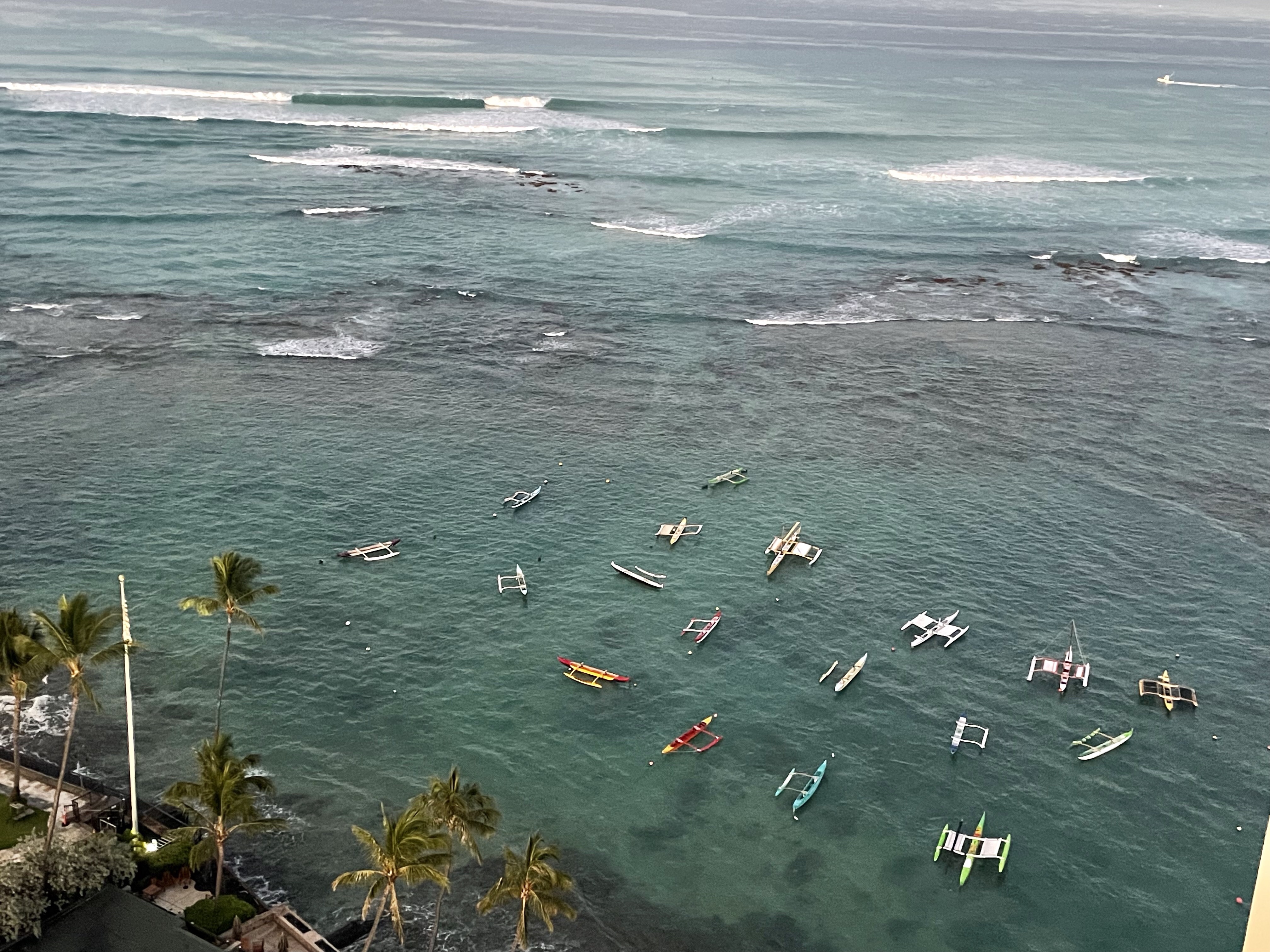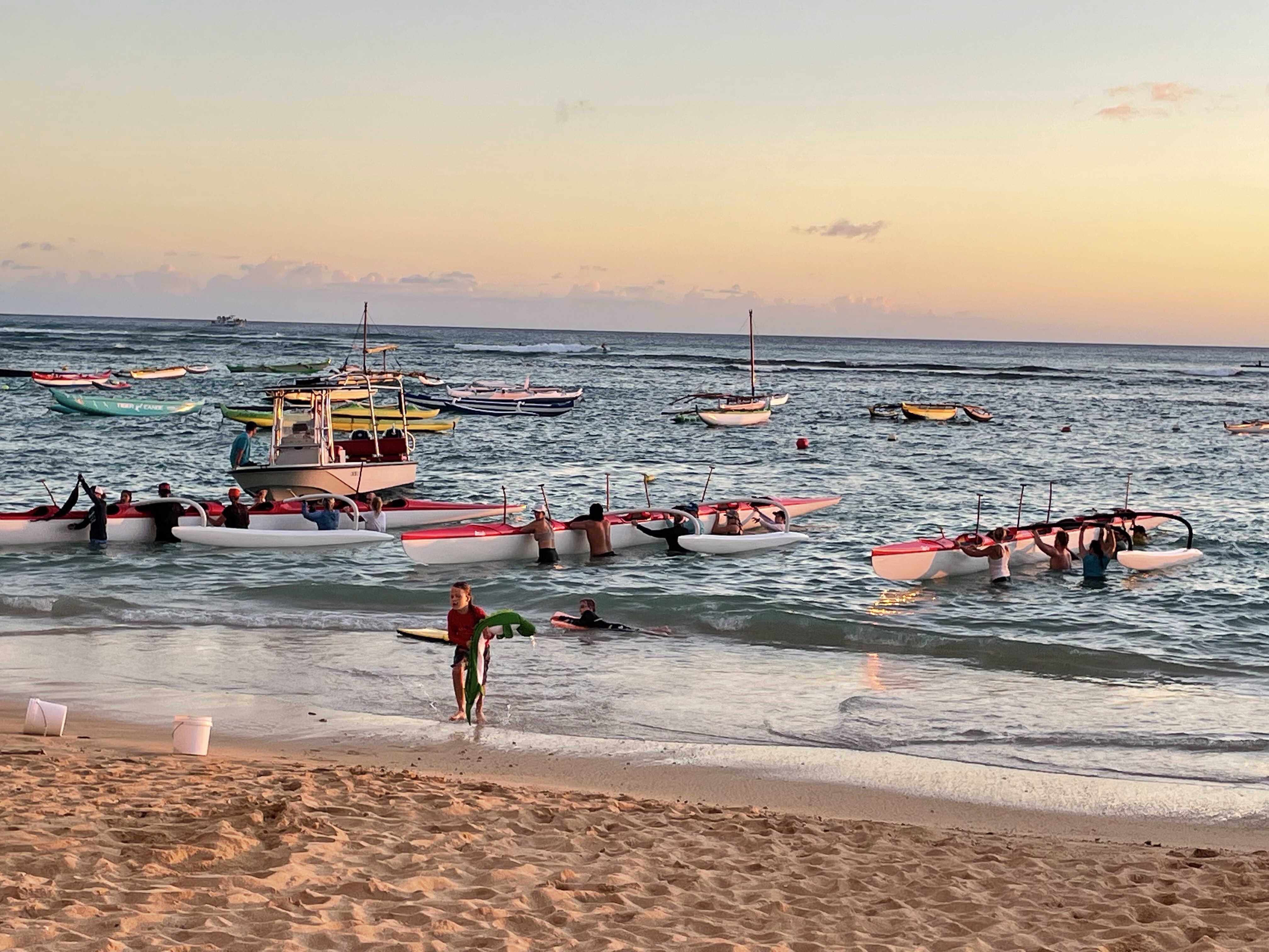 I never get tired of looking at the canoes and boats in the water near Diamond Head.