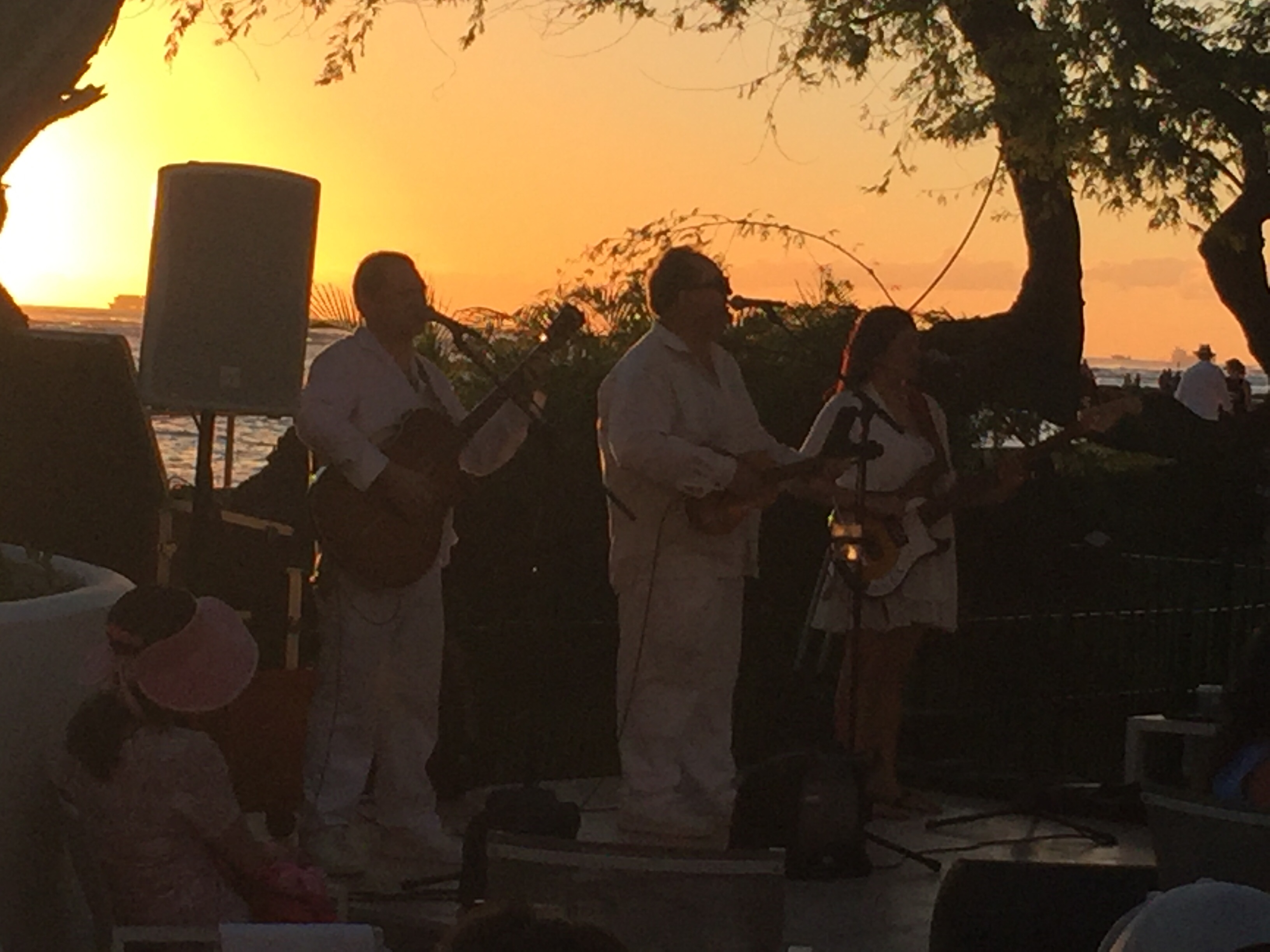 One of the things I like best about Hawai`i is the music. Almost anywhere you go, you can find music and catch a performance of some kind. We were fortunate enough to catch at least one performance nearly every day of this trip. The Courtyard Marriott featured live music every evening. They were mostly local performers with a wide range of talent. We didn’t catch the names of most of the performers, but being that the bar provided a somewhat intimate setting, there was a lot of audience participation. We requested Hi`ilawe from one duo, which got us into a discussion of Gabby Pahinui who made the song famous.